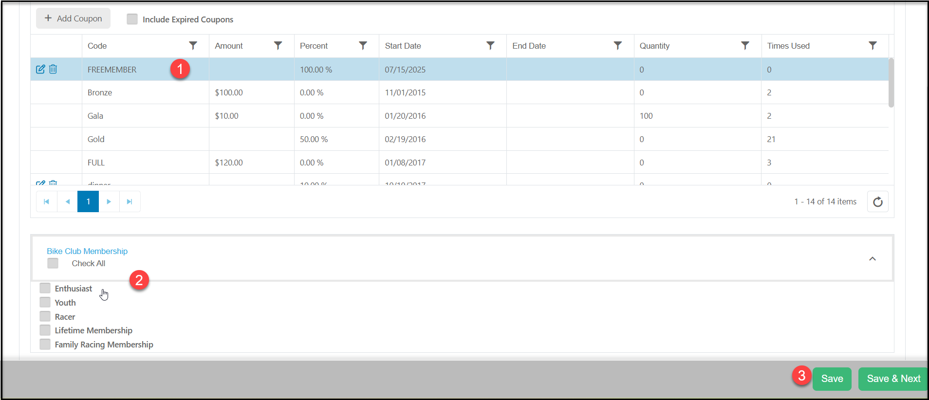 If a coupon is applied to a transaction, you can see the Coupon Code used on the Memberships grid.