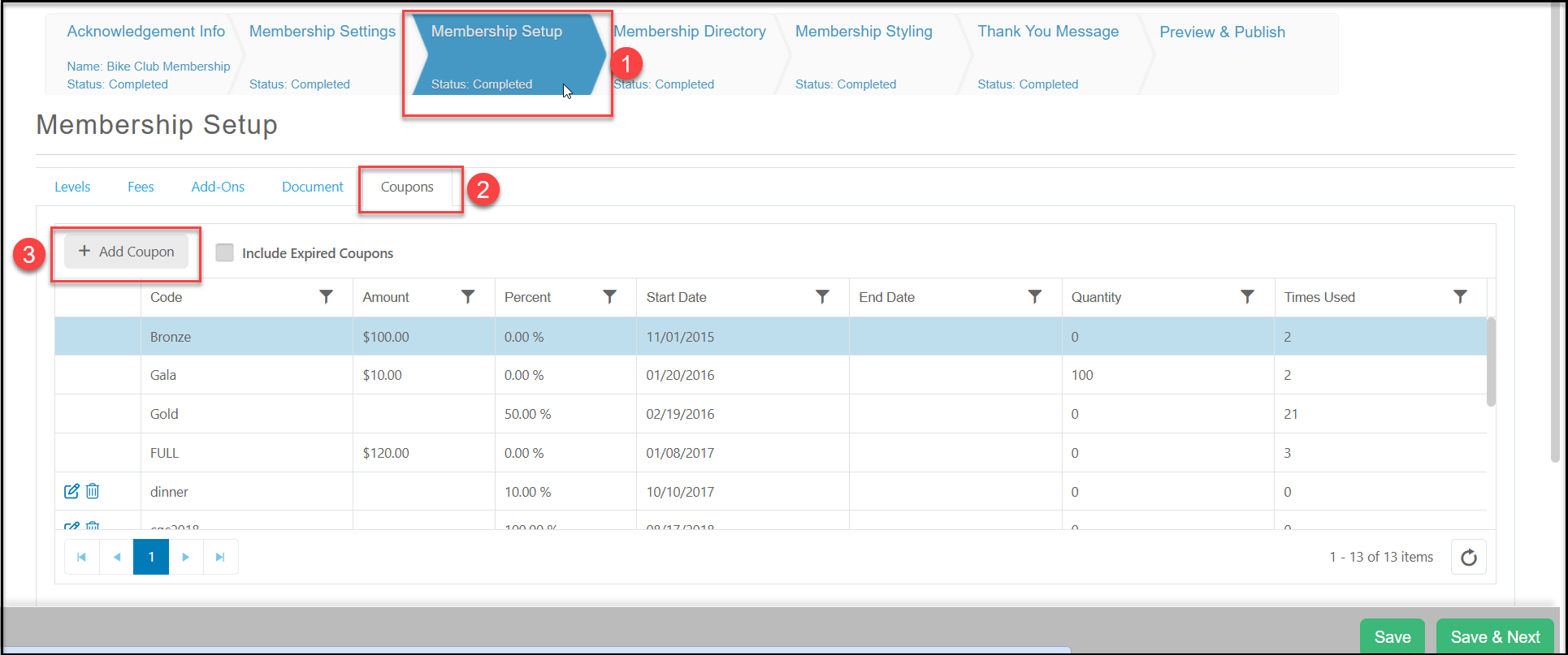 1. To create a coupon, go to the Membership page's Membership Set Up tab.