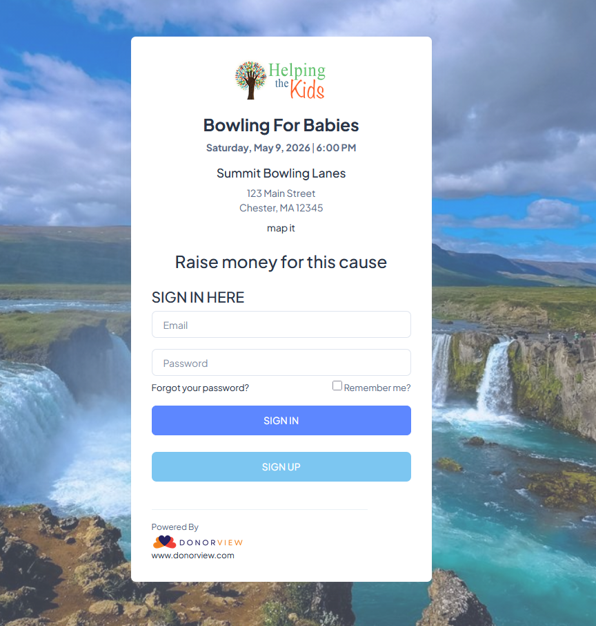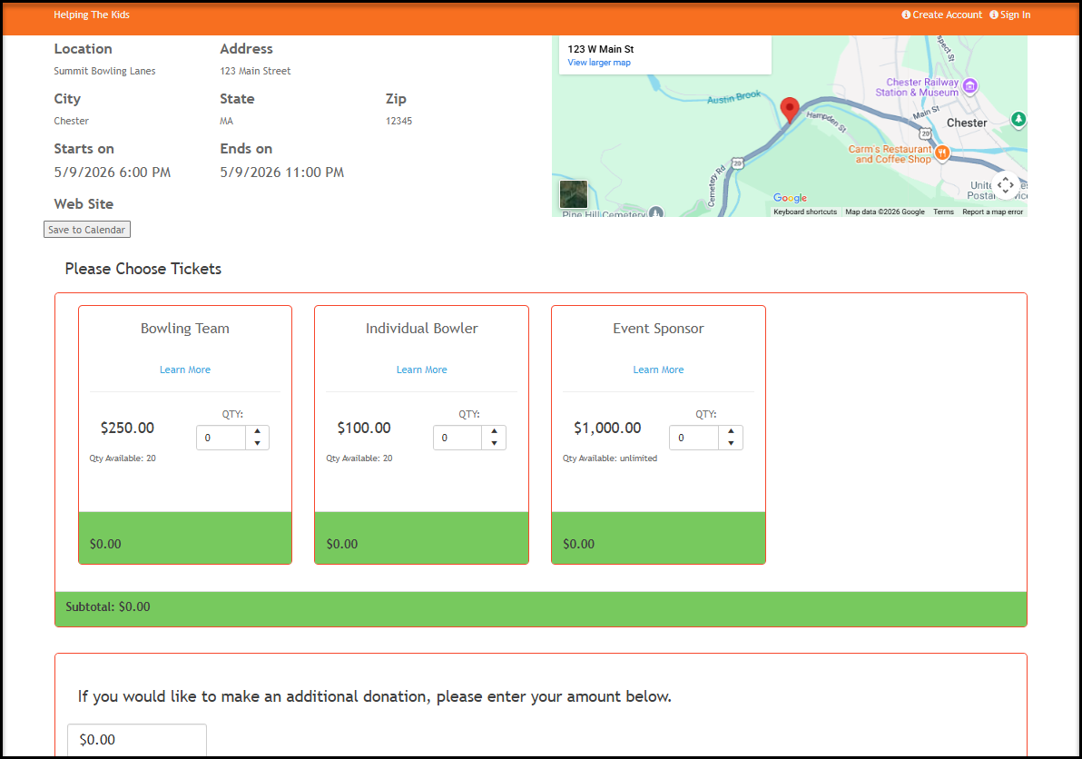 On the event page, the registrant will select which ticket levels they wish to register for. In our example, we will select the Bowling Team.