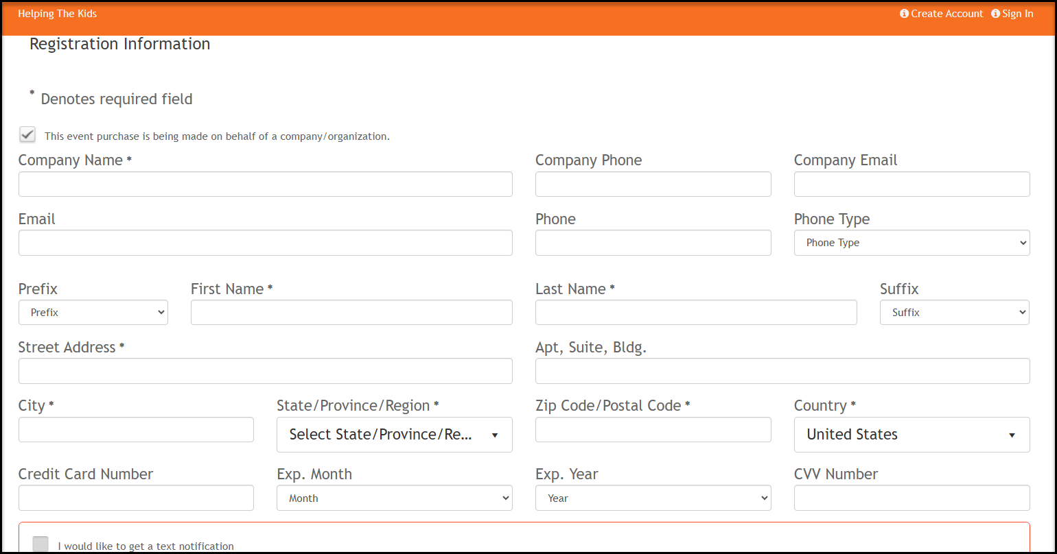 The person or organization registering will complete the registration and payment information at the bottom of the event page and click Submit to complete their registration.