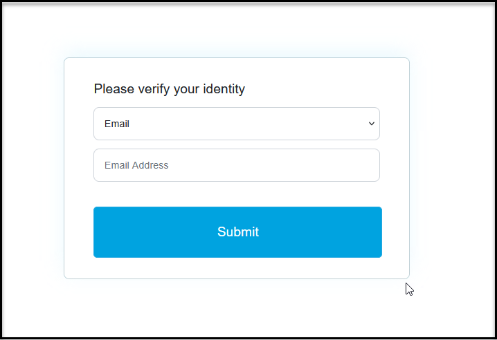 Depending on your set up, when someone uses the link for the survey, the first question they will see is the verification step. In the example below, they can choose from the top drop down whether they will enter their email address or phone number.