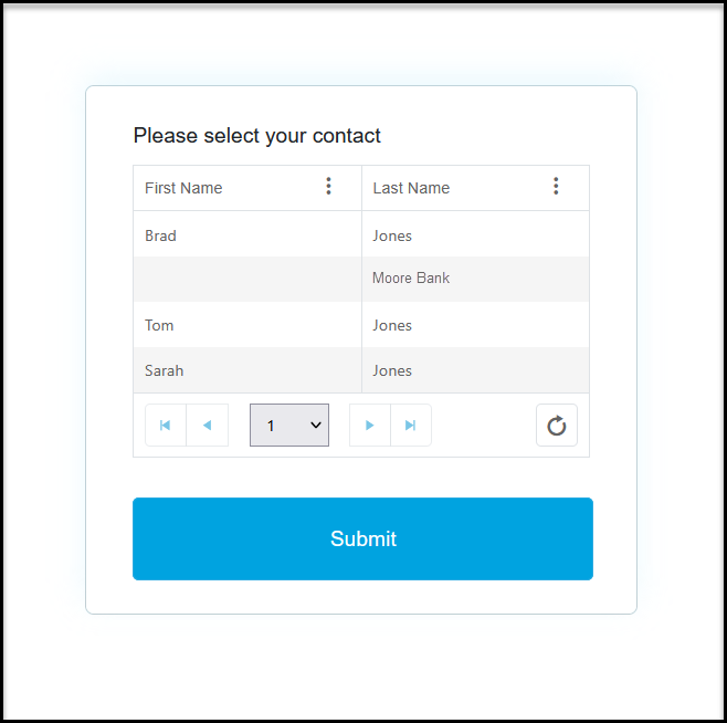 If you have multiple constituents who share the same email address or phone number, a list will be displayed so that the respondent can choose the correct record to link to.